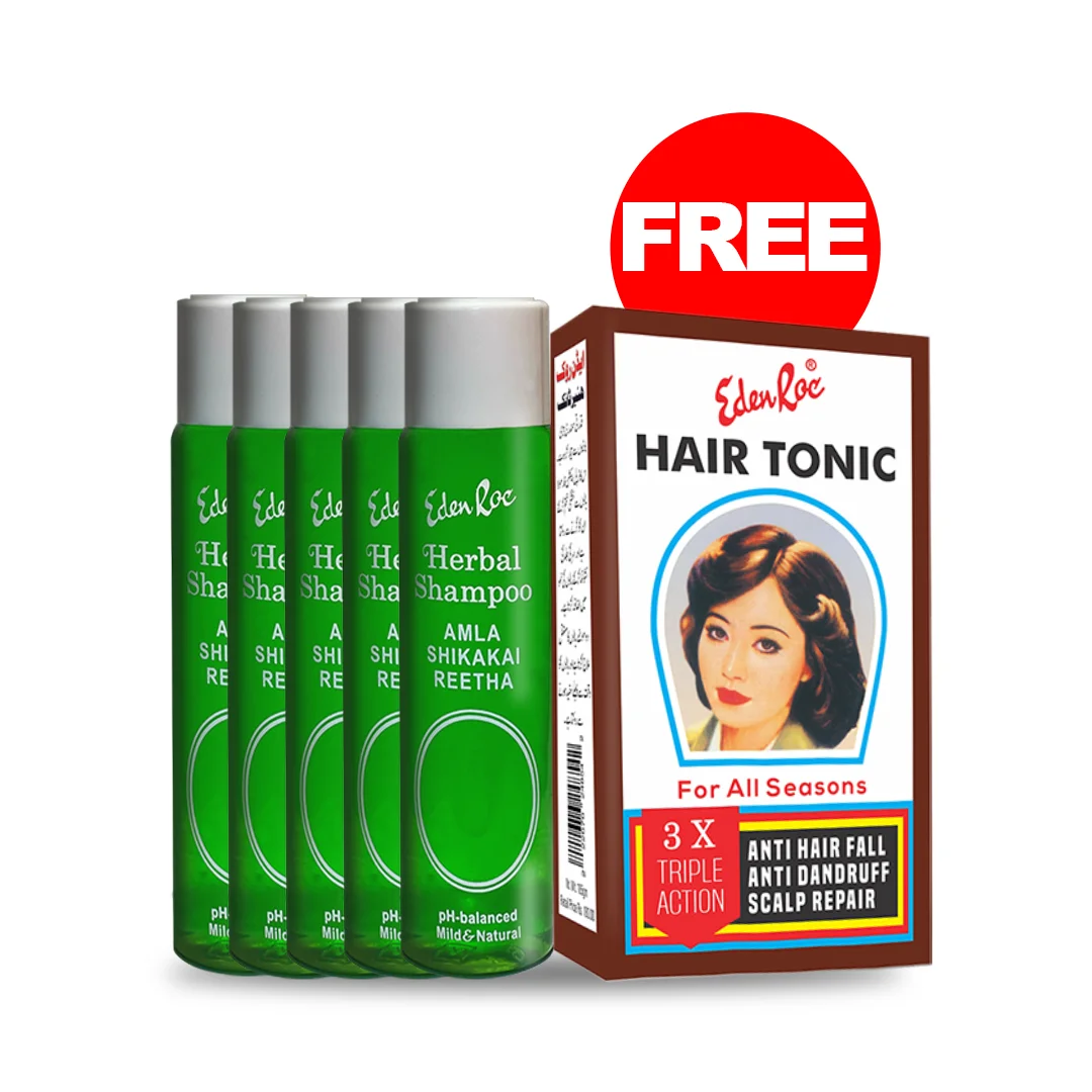 Eden Roc Herbal Shampoo contains universally acclaimed Herbs like Amla, Reetha, and Shikakai which are known to be the best hair treatment agents for all hair ailments. Noninclusive of sulfates and parabens, it goes deeper into the scalp, enriching it with hair growth qualities. Moreover, Amla’s antifungal effect curbing dandruff. Use Eden Roc’s Herbal Shampoo for increased hair volume and natural hair color retention.